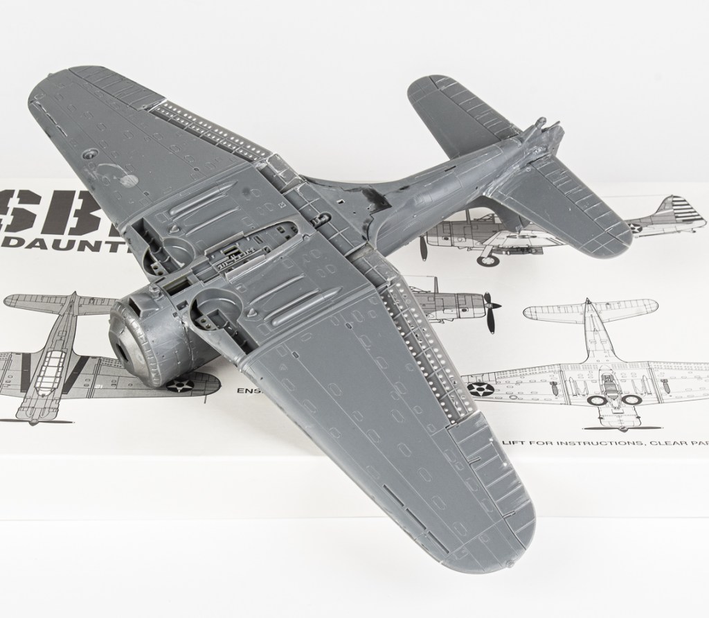 This is the second AM Dauntless kit that has crossed the bench. The first being completed just after its release waaaaaaayyyyyy back in 1997. That one was an SBD-1 finished in the very striking “yellow wings” scheme. It stood out at the time as a fun build, and I’m happy to report the second time around the experience was the same.