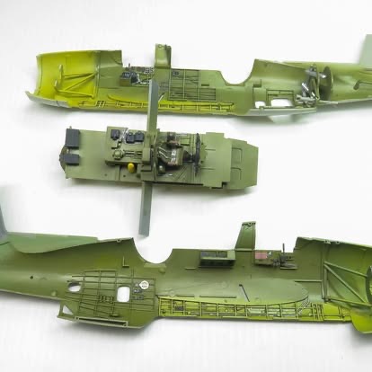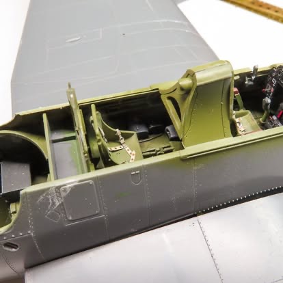 Being a FAA machine, the first thing to do was build the second cockpit position FAA machines had behind the pilot instead of the radio equipment the USN aircraft had, and the kit provides.